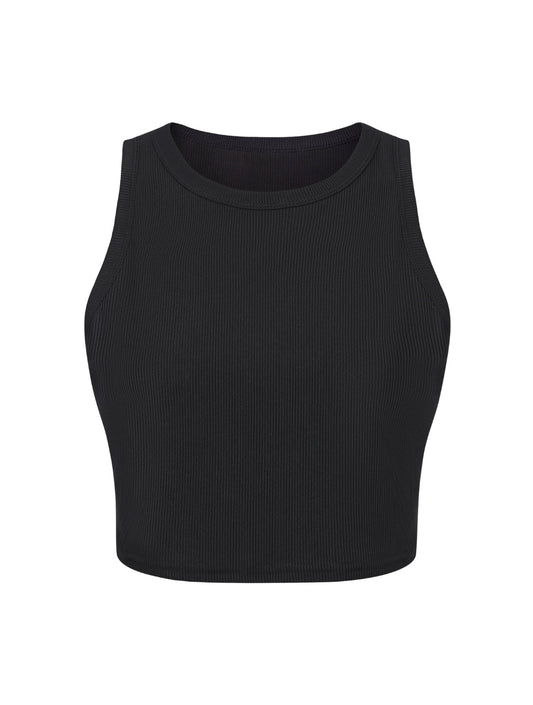 Haut court côtelé sans couture à manches courtes avec zip frontal
